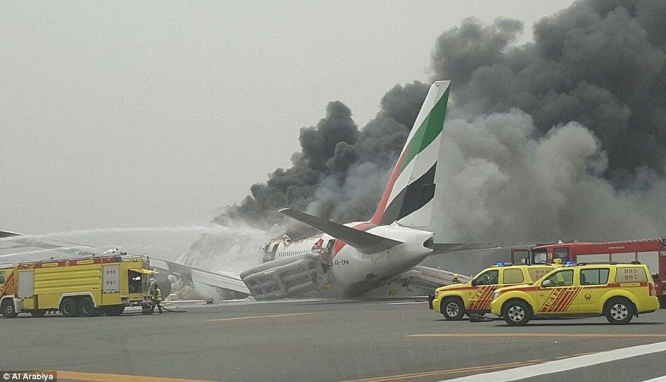 Theo CNN, hôm 3/8, chiếc phi cơ của hãng hàng không Emirates đã hạ cánh Sân bay Quốc tế Dubai trong tình trạng bốc cháy dữ dội. 300 hành khách và phi hành đoàn đã kịp thời thoát khỏi máy bay, nhưng có một nhân viên cứu hỏa thiệt mạng.