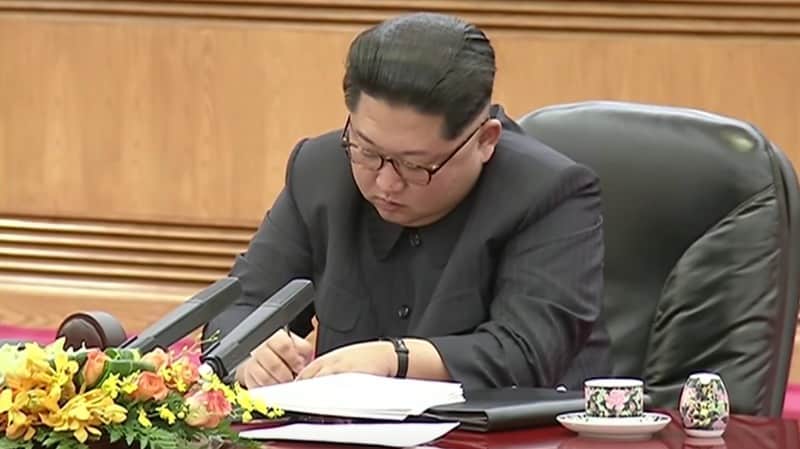 Khi ông Tập Cận Bình phát biểu, ông Kim Jong-un chăm chỉ ghi chép (Ảnh cắt từ video của CCTV)