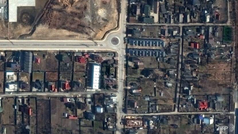 Tuy vậy, hình ảnh vệ tinh chụp hồi giữa tháng 3 về một con đường ở Bucha đã cho thấy một số thi thể dân thường nằm chết trong hoặc ngay bên vệ đường.