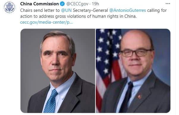 Nhấn mạnh vào lễ kỷ niệm một năm thực thi Luật An ninh Quốc gia gây tranh cãi của Hồng Kông, cũng như tập trung vào các khu tự trị Tân Cương và Tây Tạng của Trung Quốc Đại lục, Thượng nghị sĩ Jeff Merkley (tiểu bang Oregon) và Dân biểu Jim McGovern (tiểu bang Massachusetts), cũng là Chủ tịch Ủy ban Lập pháp – Hành pháp về Trung Quốc của Quốc hội Mỹ (CECC), đã yêu cầu ông Guterres tiến hành “các biện pháp tức thời nhằm giám sát chặt chẽ và đánh giá hành vi của Trung Quốc”.