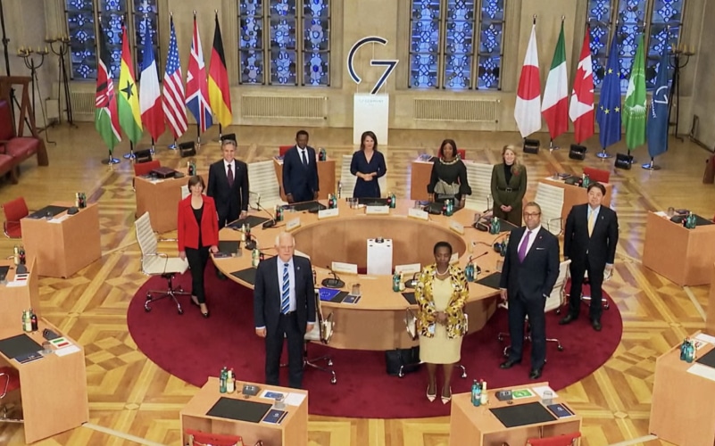 Trong một tuyên bố chung, các ngoại trưởng G7 cảnh báo Trung Quốc phải tuân thủ luật pháp quốc tế, nói rằng “chỉ có triển khai hợp tác trong một trật tự quốc tế dựa trên luật lệ, thì mới có thể ứng phó thành công với những thách thức này.”