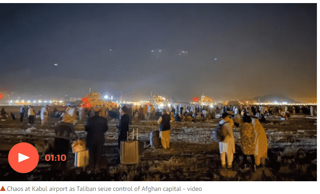 Taliban hôm 15/8 tuyên bố chiến tranh Afghanistan đã kết thúc sau khi nhóm chiến binh Hồi giáo này kiểm soát dinh tổng thống tại Kabul, trong khi Tổng thống Afghanistan bỏ trốn và lực lượng Mỹ cũng như các quốc gia đồng minh đang gấp rút sơ tán hàng nghìn công dân của họ khỏi Afghanistan.