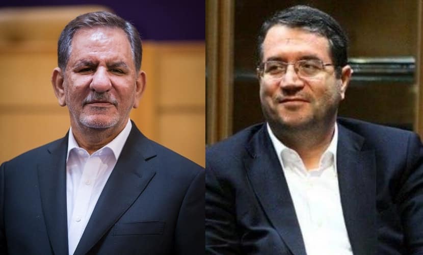 Phó tổng thống thứ nhất Iran Eshagh Jahangiri (trái) và Bộ trưởng Bộ Công nghiệp Reza Rahmani (phải)
