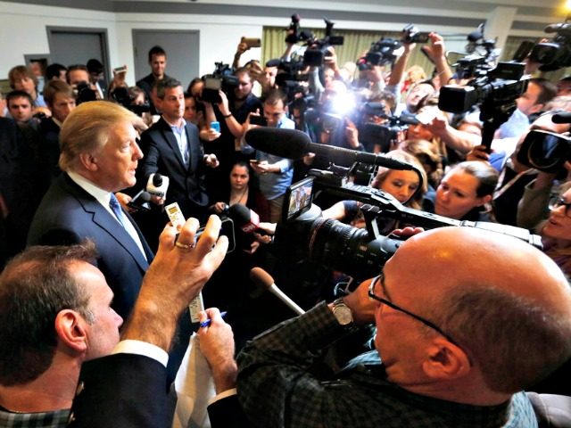 Tổng thống Trump trả lời phỏng vấn truyền thông. (Ảnh qua Breitbart News)