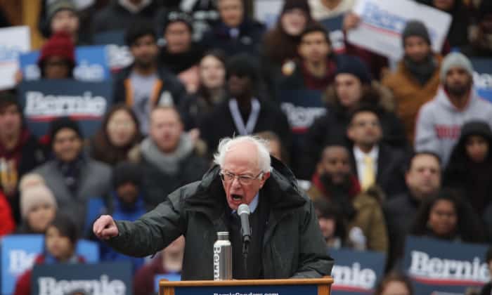 Thượng nghị sĩ Bernie Sanders (bang Vermont), ứng viên tổng thống Mỹ 2020 chào mừng những người tới tham gia buổi tập trung chiến dịch tại Brooklyn Borough, New York hôm 2/3/2019. (Ảnh: Mark Abramson/Bloomberg via Getty Images)