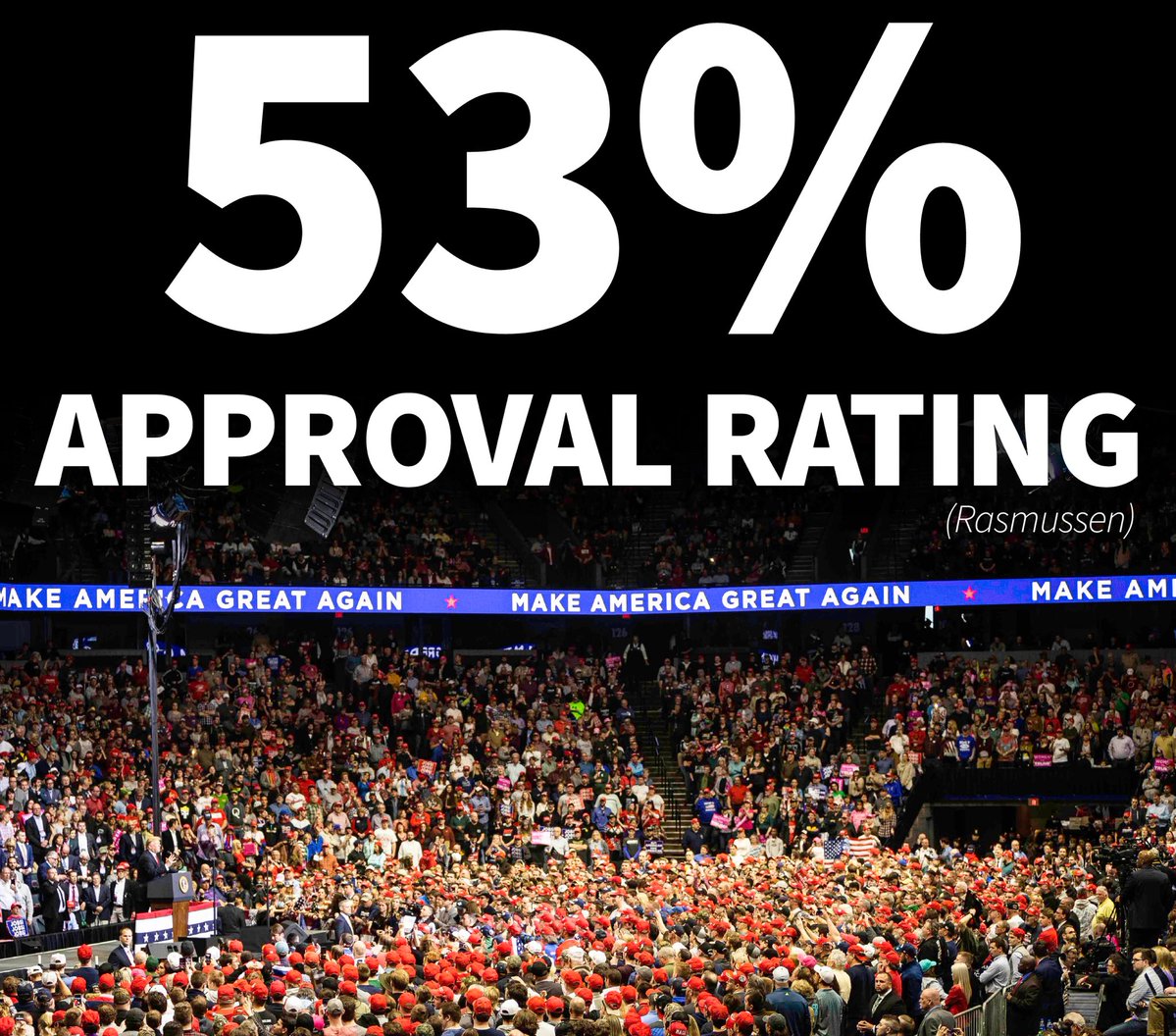 Ông Trump phản ứng với thông tin từ Khảo sát Rasmussen bằng cách viết “Thank You!” trên Twitter kèm bức ảnh nổi bật về tỷ lệ tín nhiệm 53%.