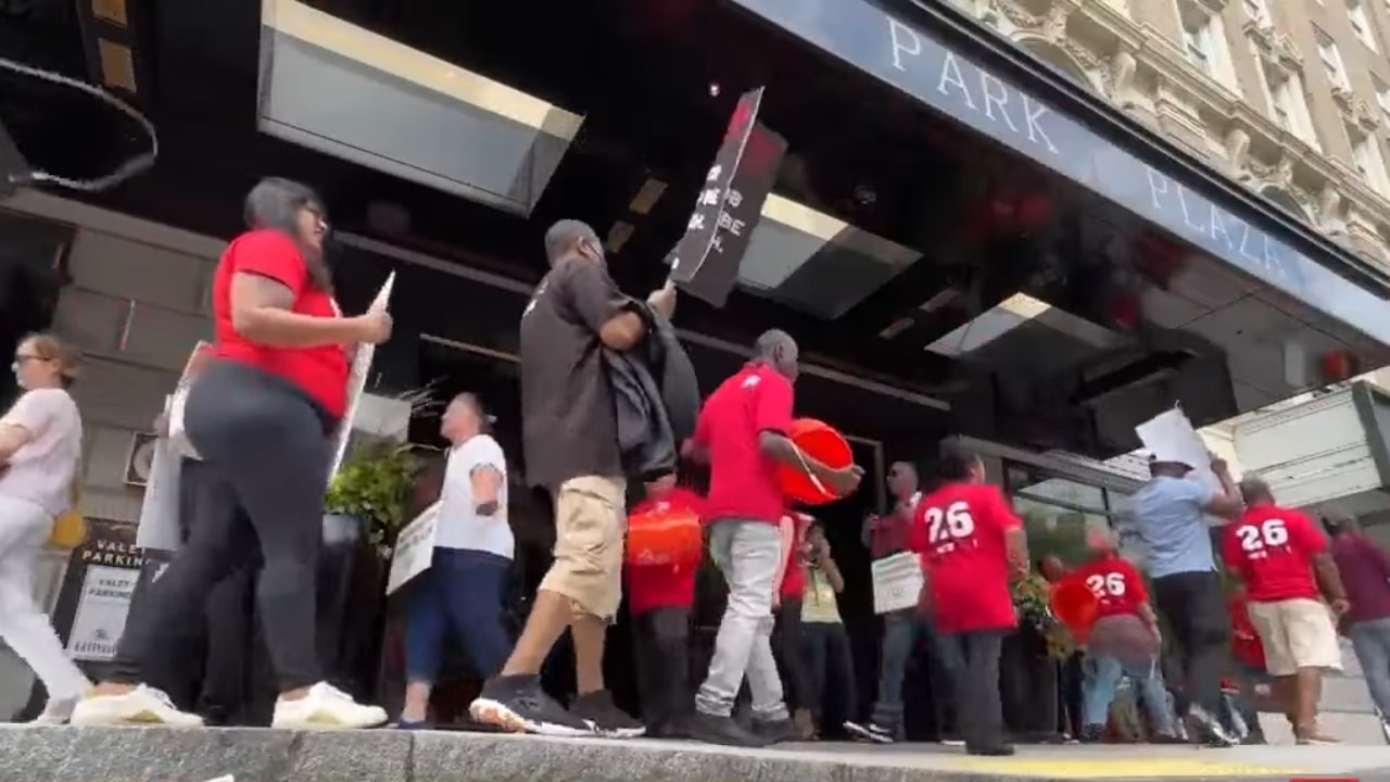 Khoảng 10.000 nhân viên khách sạn đã đình công tại nhiều thành phố khắp Hoa Kỳ hôm Chủ Nhật (01/9). (Ảnh chụp màn hình video)