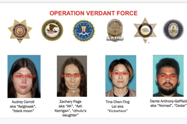 Theo FBI và các công tố viên liên bang, cả bốn nghi phạm đều là thành viên của một nhóm cực đoan có tên “Mặt trận Giải phóng Đảo Rùa” (Turtle Island Liberation Front – TILF). Nhóm này được mô tả là thân Palestine, chống lực lượng thực thi pháp luật và chống chính phủ Mỹ, hoạt động theo tư tưởng cực tả. Các nghi phạm bị cáo buộc đã lên kế hoạch đặt bom tự chế tại năm địa điểm ở Los Angeles và phá hủy hai công ty Mỹ vào đêm 31/12.