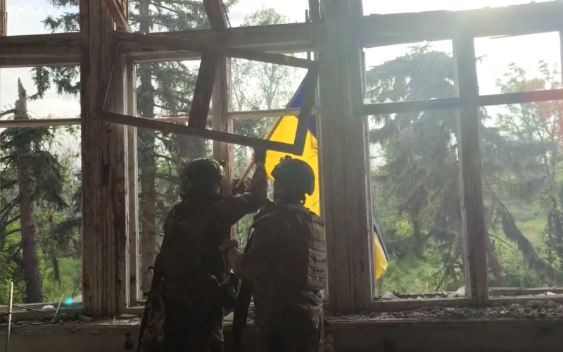 Quân Kyiv đã đăng tải video trên mạng xã hội cho thấy các binh sĩ đang cắm cờ Ukraine tại một tòa nhà bị đánh bom ở làng Blahodatne thuộc vùng Donetsk và tạo dáng với lá cờ của đơn vị họ ở làng Neskuchne liền kề. (Reuters viết rằng họ chưa xác minh được về các thông tin này.)