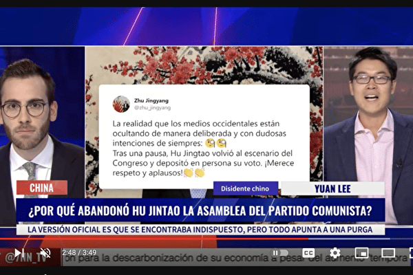 Kênh truyền thông chính thống Tây Ban Nha ABC đưa tin: “Lãnh sự Trung Quốc Chu Kinh Dương tại Barcelona đã tung tin đồn trên Twitter rằng cựu Chủ tịch Hồ Cẩm Đào đã quay trở lại Đại hội 20, sau khi bị cưỡng chế theo lệnh của ông Tập Cận Bình.”