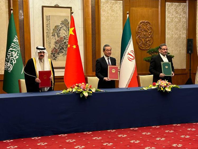 Vào tháng Ba, Bắc Kinh triệu tập cuộc họp ba bên gồm các thứ trưởng ngoại giao Trung Quốc – Iran – Nga, tái khẳng định sự ủng hộ đối với một giải pháp đa phương dựa vào JCPOA và lên án các biện pháp cấm vận trái luật nhằm vào Iran.