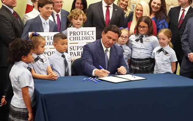 Thống đốc Florida Ron DeSantis đã ký dự luật thành luật vào cuối tháng Ba. Ông DeSantis, một thành viên Đảng Cộng hòa, cho biết: “Chúng tôi sẽ đảm bảo rằng các bậc cha mẹ cho con cái của họ đến trường để tiếp nhận giáo dục chứ không phải tiếp nhận sự nhồi nhét.”