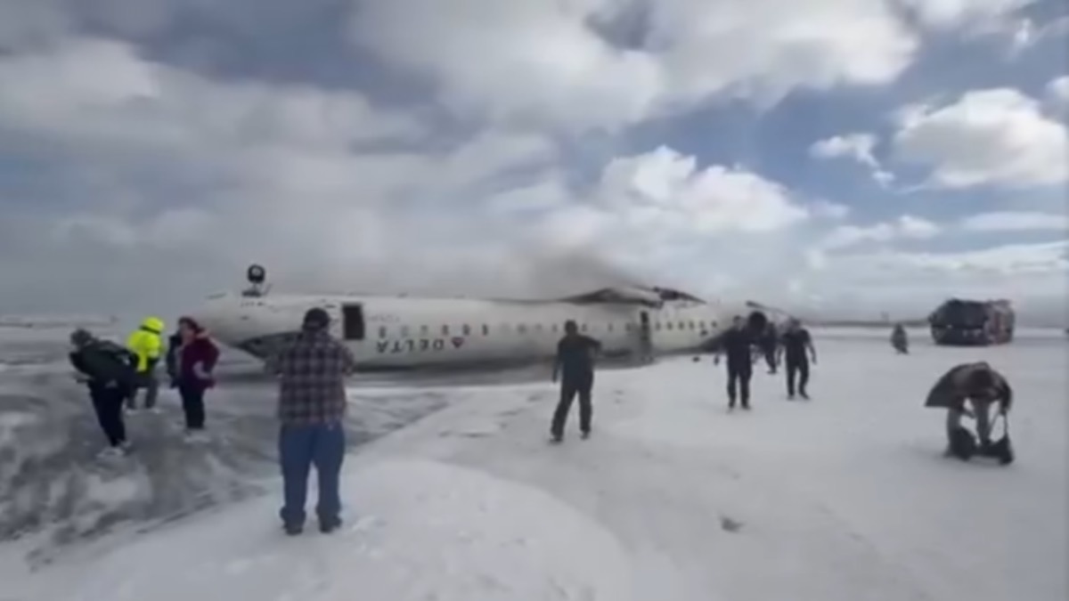 Các video được đăng trên X cho thấy một chiếc máy bay của Delta Air Lines bị lật trên đường băng phủ đầy tuyết, mọi người đang rời khỏi máy bay.