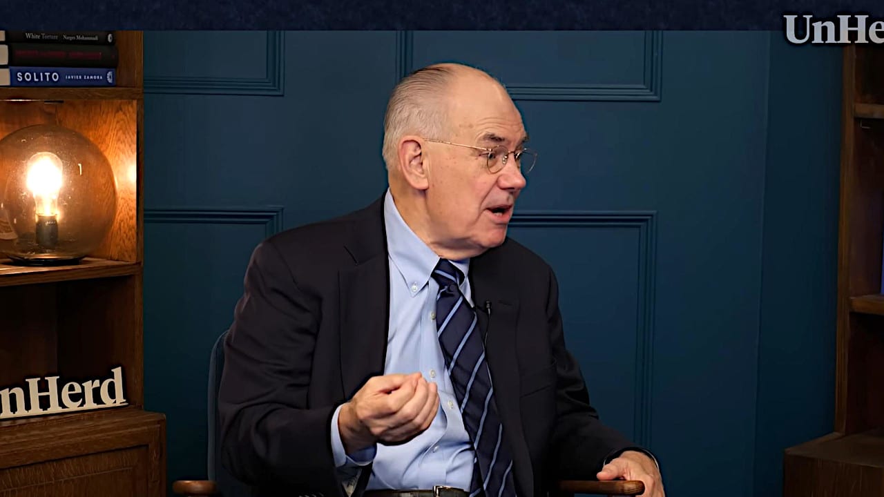Giáo sư Đại học Chicago Mỹ John Mearsheimer trong buổi phỏng vấn với UnHerd, công bố 1/11/2024 (ảnh lấy từ video)
