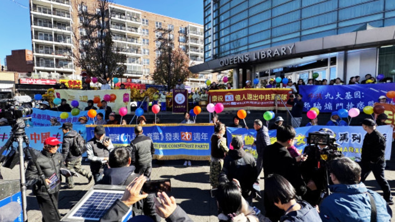 Hôm 3/11/2024, một cuộc mít tinh lớn đã được tổ chức tại trung tâm Flushing, nơi tập trung người Hoa đông nhất ở New York, để kỷ niệm 20 năm xuất bản “9 bài bình luận về Đảng Cộng sản” (gọi tắt là “Cửu bình”). Tại cuộc mít tinh, nhiều vị khách Trung Quốc và phương Tây thuộc mọi tầng lớp xã hội đã phát biểu, vạch trần tội ác của ĐCSTQ, chia sẻ nguồn cảm hứng khi đọc “Cửu bình”, đồng thời ca ngợi tác động to lớn mà “Cửu bình” mang lại cho Trung Quốc và thế giới.