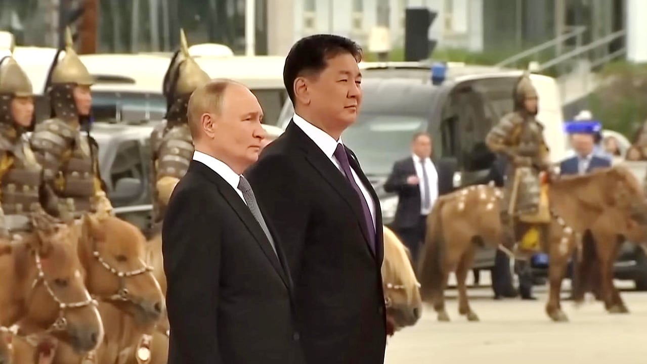 Tổng thống Nga Vladimir Putin tới Mông Cổ vào tối Thứ Hai. Ông được Tổng thống Mông Cổ Ukhnaagiin Khurelsukh đón tiếp nồng nhiệt và trang trọng ở Quảng trường chính thủ đô Ulaanbaatar.