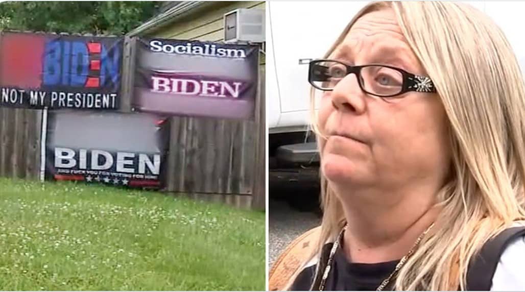 Một người phụ nữ tại bang New Jersey đã để những tấm “áp phích” chỉ trích ông Joe Biden bên ngoài nhà của mình. Sau đó bà bị một thẩm phán ra lệnh gỡ những tấm biển xuống hoặc phải đối mặt với án phạt 250 đô la mỗi ngày.