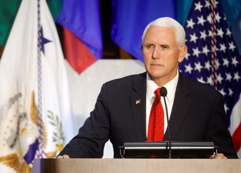 Phó Tổng thống Mỹ Mike Pence phát biểu tại Diễn đàn Washington lần thứ 49 về Châu Mỹ của Hiệp hội Châu Mỹ tại trụ sở Bộ Ngoại giao Mỹ hôm 7/5/2019. (Ảnh: Andrew Harrer/Bloomberg via Getty Images)