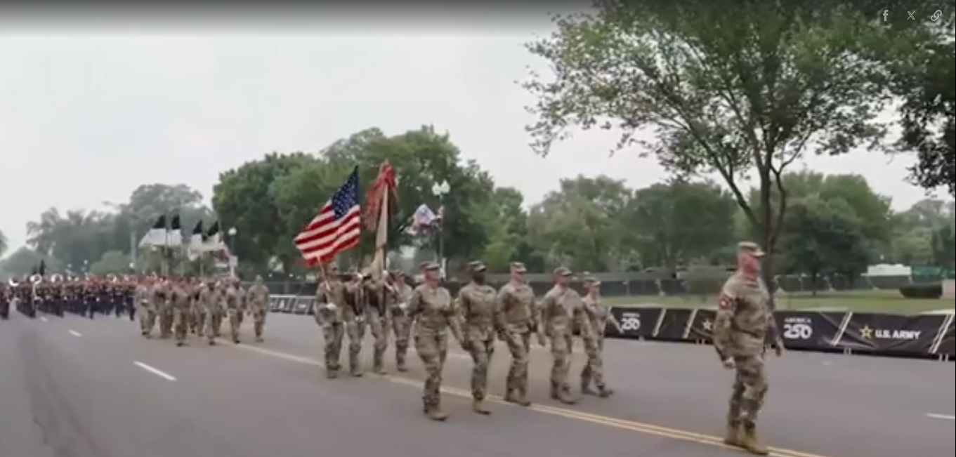 Sự kiện này đã bắt đầu sớm hơn dự kiến rất nhiều và đang diễn ra rất nhanh, được cho là vì dự báo thời tiết vẫn rất xấu cho khu vực Washington D.C. Trong 40 phút đầu tiên, cuộc duyệt hành đã lướt qua hơn 200 năm lịch sử của quân đội Mỹ, với màn xuất hiện của các đơn vị từ khi thành lập vào năm 1775 đến thời kỳ Chiến tranh vùng Vịnh năm 1991. Thời gian duyệt binh theo kế hoạch ban đầu là 5 giờ 30 ngày 15/6 (theo giờ Việt Nam). Tuy nhiên, lịch trình sự kiện đã đẩy lên sớm hơn 30 phút, được cho là do tình hình thời tiết bất lợi.