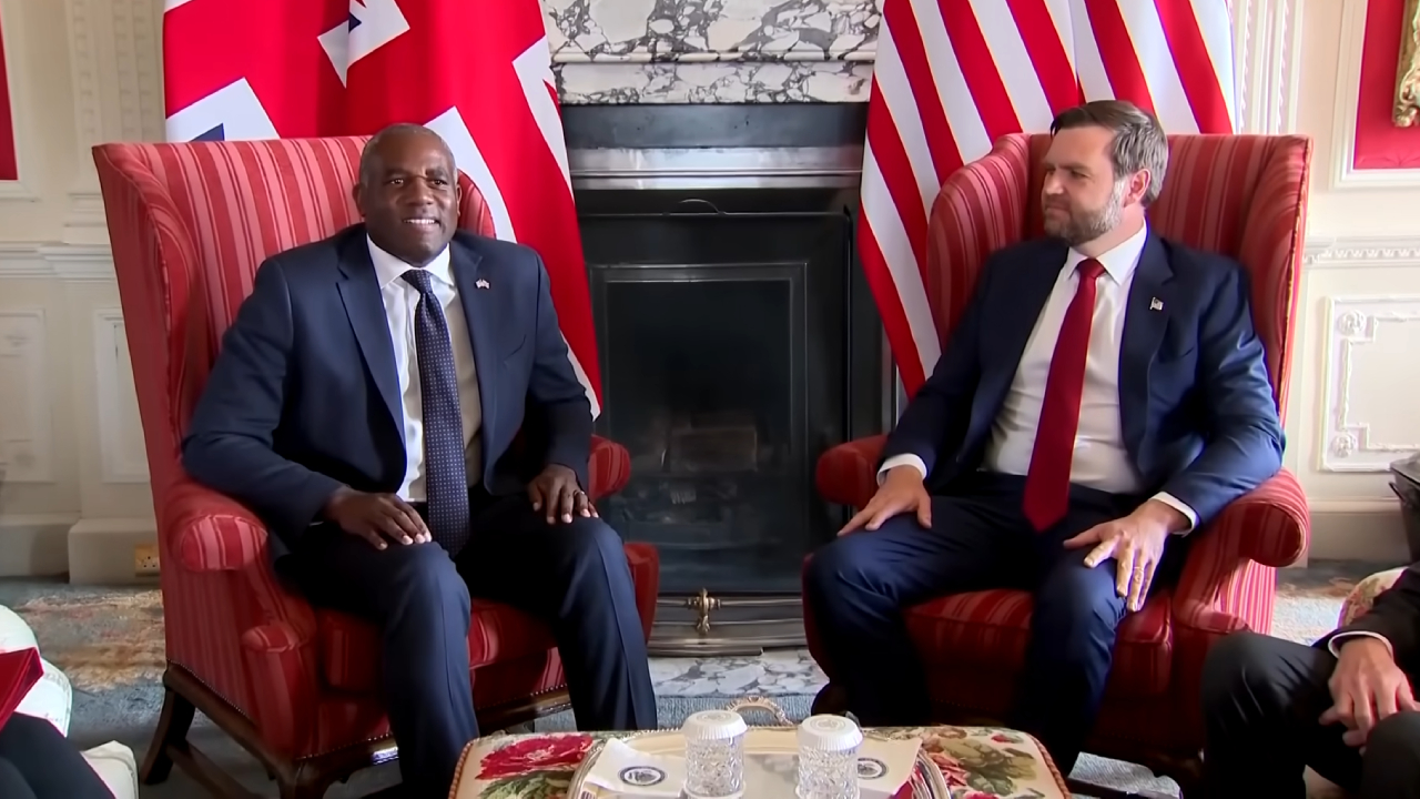 Phó Tổng thống Mỹ JD Vance gặp Ngoại trưởng Anh David Lammy. (Ảnh chụp màn hình video)