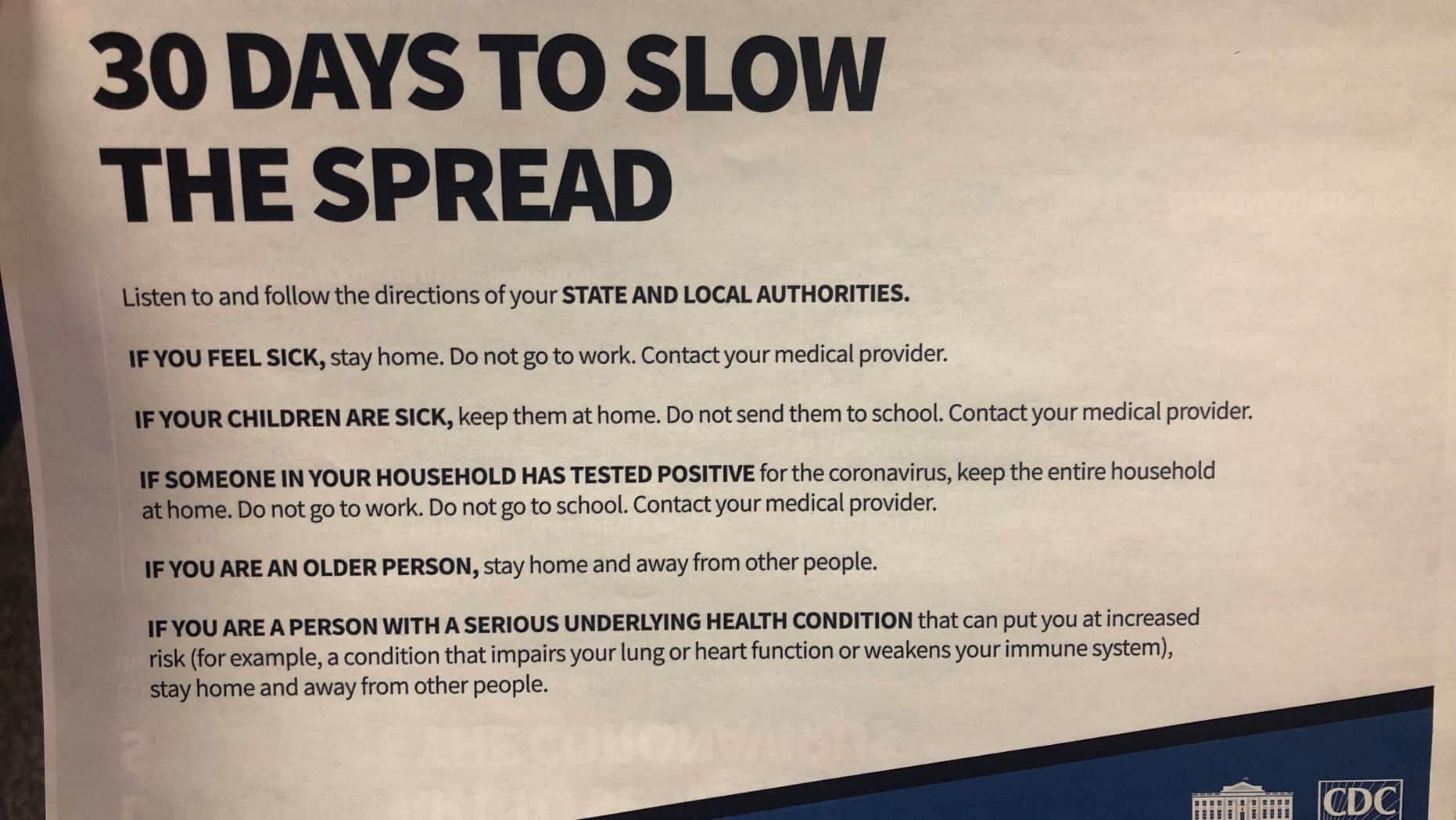 - Các hoạt động của trường học có thể gia tăng sự lây lan của virus corona. Thống đốc tại các bang có bằng chứng về lây nhiễm cộng đồng nên đóng cửa trường học tại các khu vực bị ảnh hưởng và các vùng xung quanh. Các thống đốc nên đóng cửa trường học tại các cộng đồng gần với khu vực bị lây nhiễm cộng đồng, thậm chí khi mà các khu vực này nằm ở bang kế cận. Ngoài ra, quan chức bang và địa phương nên đóng cửa trường học ở những nơi mà virus corona đã bị phát hiện trong dân cư có quan hệ với trường.