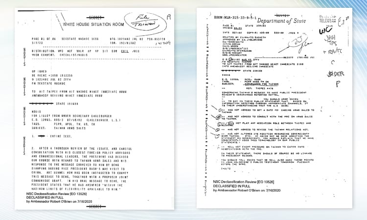 Tài liệu ngoại giao liên quan đến Đài Loan từ năm 1982 vừa được chính quyền Trump giải mật. (Ảnh: AIT)