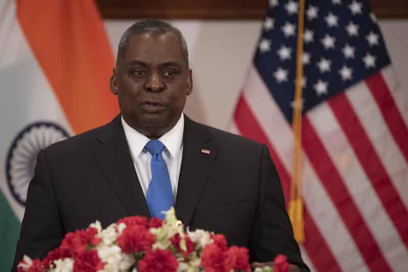 Secretary of Defense Lloyd J. Austin III talks to the media, New Delhi, India, March 20, 2021. (DoD photo by Lisa Ferdinando)