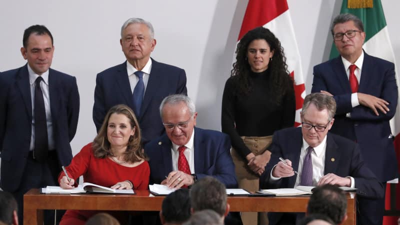 Vào tháng Mười Một năm ngoái, tổng thống ba nước Mỹ, Mexico và Canada đã ký USMCA để thay thế NAFTA, nhưng Đảng Dân chủ kiểm soát Hạ viện Mỹ khăng khăng đòi thay đổi lớn thỏa thuận liên quan đến các vấn đề lao động và thực thi môi trường trước khi đưa ra bỏ phiếu.