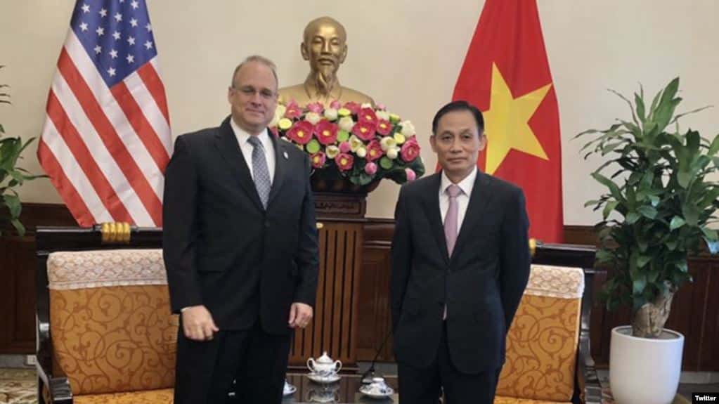 Thứ Năm tuần trước (1/10), đại diện quân sự của Tổng thống Mỹ là Đại sứ Marshall Billingslea đã gặp các quan chức Việt Nam. Các nguồn tin trong nước cho biết Đại sứ Billingslea đã đến Hà Nội vào chiều 30/9, sau khi thăm những đồng minh truyền thống của Mỹ Hàn Quốc và Nhật Bản. Tháp tùng với ông Billingslea trong chuyến công du đến Hà Nội có tướng Thomas Bussiere, phó Chỉ huy Bộ tư lệnh Chiến lược quân đội Mỹ. Ông Billingslea chia sẻ với truyền thông rằng đã đề cập vấn đề bành trướng trên biển của Trung Quốc cũng như cả vấn đề Trung Quốc không ngừng mở rộng kho vũ khí hạt nhân.