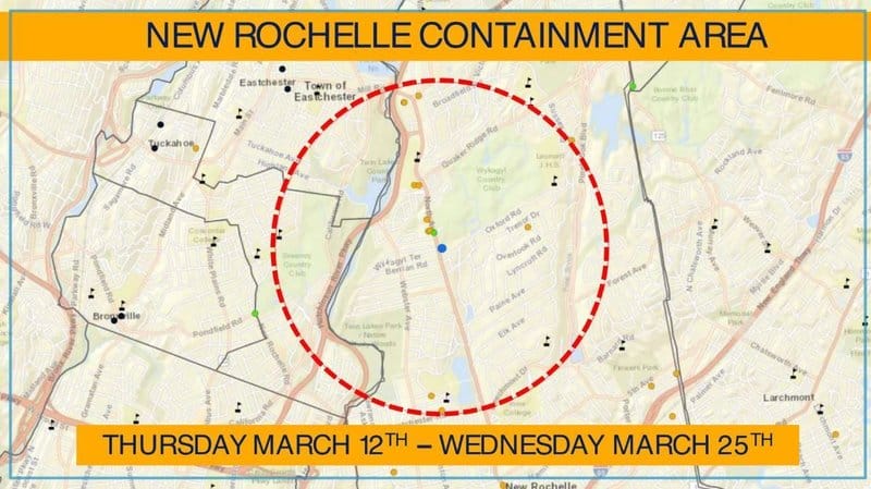 Thống đốc Cuomo cho biết khu vực phong tỏa là khoảng 1 dặm bao quanh New Rochelle. Lệnh phong tỏa này sẽ có hiệu lực từ ngày 12/3 tới ngày 25/3.