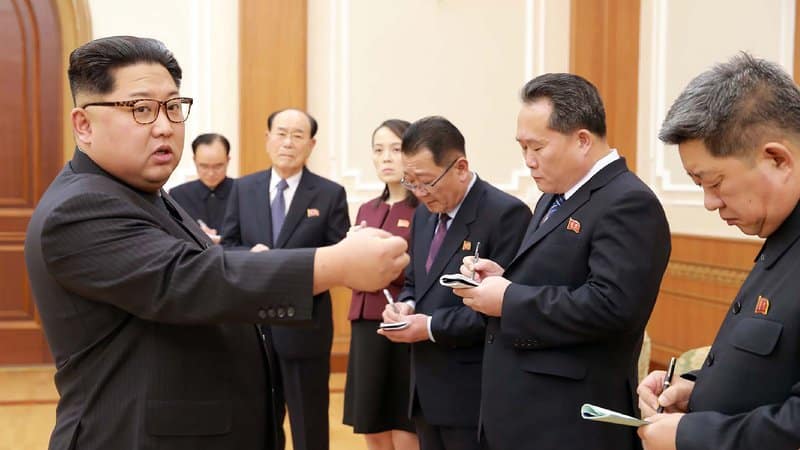 Phản ứng của Bắc Hàn: Trong bài phát biểu chào mừng năm mới 2018 vào ngày 1/1, ông Kim Jong-un đã cảnh báo về một nút điều khiển hạt nhân “luôn luôn sẵn sàng trên bàn làm việc của mình”. Tuy nhiên, chưa có bất kỳ vụ thử tên lửa hay hạt nhân nào sau đó. Bắc Hàn thậm chí đã nối lại đường dây nóng với Hàn Quốc và tiến hành các cuộc đàm phán cấp cao để đưa thành công đoàn vận động viên sang miền Nam tranh tài tại Thế vận hội mùa đông. Chế độ Kim Jong-un khẳng định đây chỉ là quan hệ song phương liên Triều và vẫn coi Mỹ là kẻ thù số 1, nói rõ rằng chương trình nhạt nhân của Bắc Hàn chỉ nhằm mục tiêu tự vệ và ngăn chặn đe dọa hạt nhân từ Mỹ.