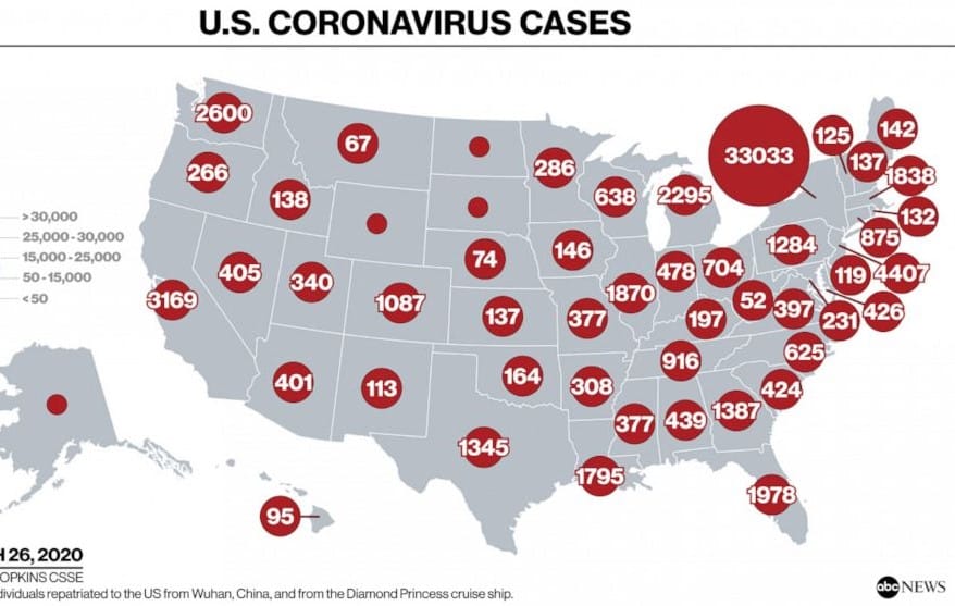 Theo báo cáo của Đại học Johns Hopkins, số ca nhiễm virus Vũ Hán tại Mỹ đã vượt 82.404, vượt qua số ca ở Trung Quốc là 81.782 và Ý là 80.589, tính đến ngày thứ Năm. Số lượng ở Mỹ chiếm 14,9% tổng số ca toàn cầu.