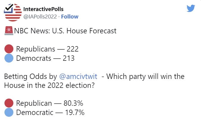 🔵 Democrats — 213Betting Odds by @amcivtwit – Which party will win the House in the 2022 election?