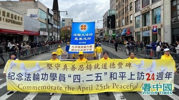 Ngày 23/4/2023, tại khu vực sầm uất Flushing, khu cộng đồng người Hoa lớn nhất ở Mỹ, hơn 4.000 người tập Pháp Luân Công đã tổ chức cuộc tuần hành lớn kỷ niệm sự kiện ngày 25/4/1999 – thời điểm 10.000 người tập Pháp Luân Công đã đến Trung Nam Hải để thỉnh nguyện ôn hòa. Đồng thời, họ cũng chúc mừng hơn 400 triệu người đã thoái xuất khỏi tổ chức đảng, đoàn, đội của Đảng Cộng sản Trung Quốc (ĐCSTQ).