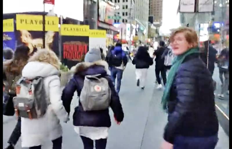 Một đoạn video khác được quay tại Quảng trường Thời đại, mặc dù không có âm thanh của bất kỳ vụ nổ nào, nhưng nhiều người lại đang chạy loạn trên đường phố.