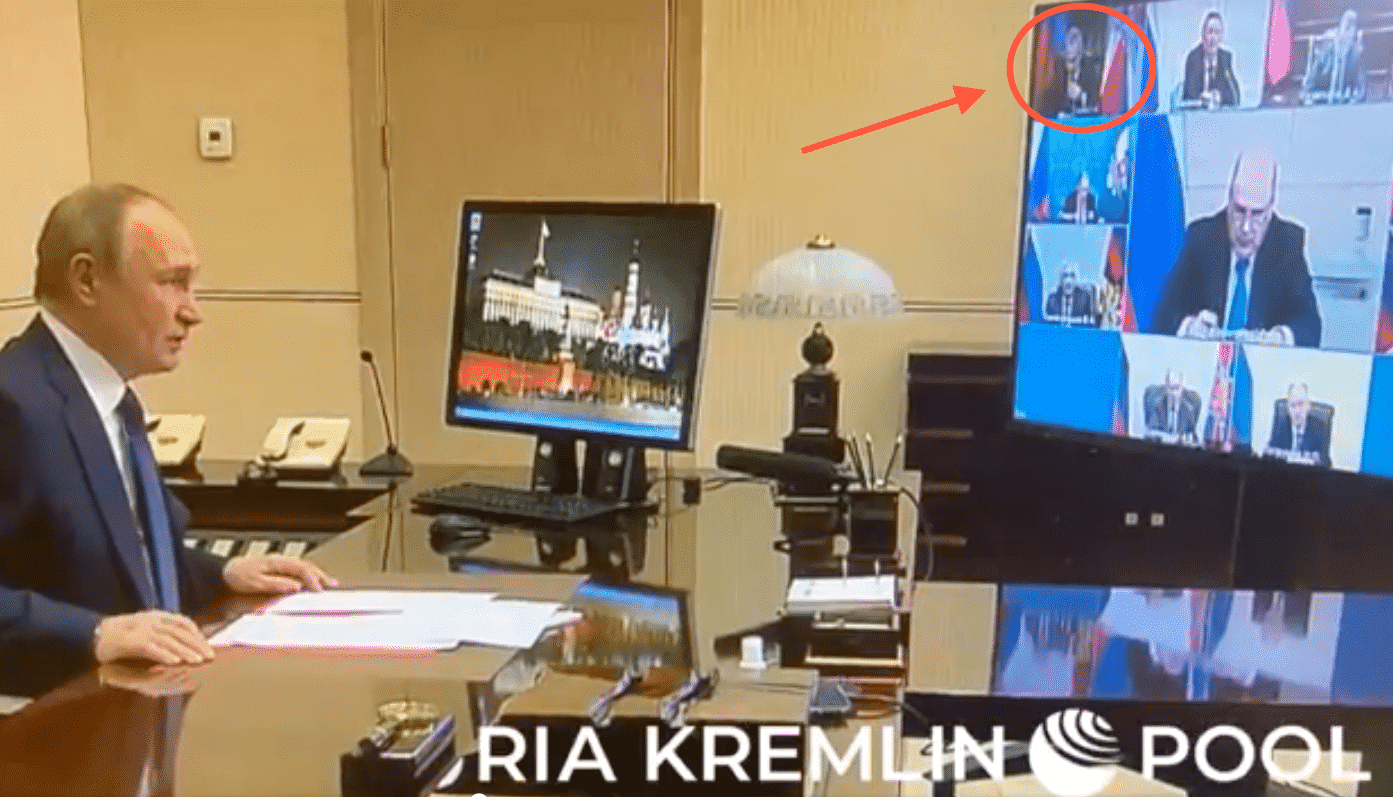 Hãng thông tấn nhà nước Nga RIA Novosti đã công bố video cho thấy Tổng thống Vladimir Putin đang nói chuyện với các cố vấn của mình, trong đó ông Shoigu xuất hiện trên màn hình ở góc trên cùng.