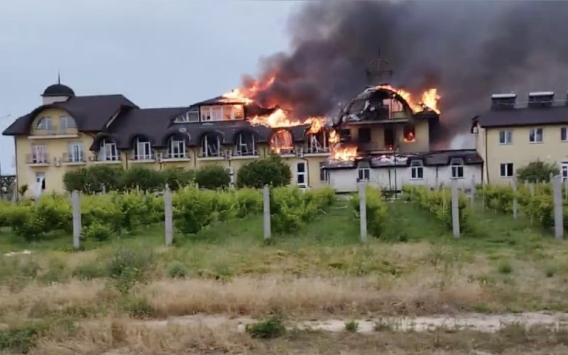 Ivan Fedorov —Thị trưởng Melitopol— 4 giờ đồng hồ sau đó so với thông báo trên của Nga, đã đăng thông báo với hình ảnh giống hệt, nhưng có nội dung là lực lượng của Kyiv đã tặng vài quả tên lửa làm quà cho “kỳ nghỉ hè” của các quan chức Nga.