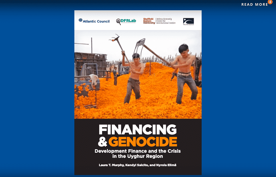 Báo cáo của Hội đồng Đại Tây Dương (Atlantic Council), một tổ chức tư vấn nổi tiếng có trụ sở tại Washington, đã tìm thấy “bằng chứng quan trọng” rằng một số khách hàng của Tổ chức Tài chính Quốc tế (International Finance Corporation – IFC), một công ty con của Ngân hàng Thế giới, là “những người tham gia tích cực” trong một chiến dịch mà Trung Quốc đã bị cáo buộc sử dụng rộng rãi lao động cưỡng bức, ép buộc người dân di dời khỏi vùng đất của họ, xóa sổ văn hóa và hủy hoại môi trường ở Tân Cương.