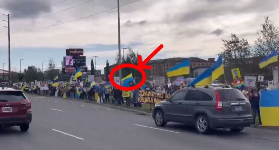 Lá cờ Ukraine treo ngược, màu vàng ở trên màu xanh. Vậy đây có phải là người Ukraine đang biểu tình hay không? Có nghi ngờ rằng đây là cuộc biểu tình bằng chi tiền thuê biểu tình: