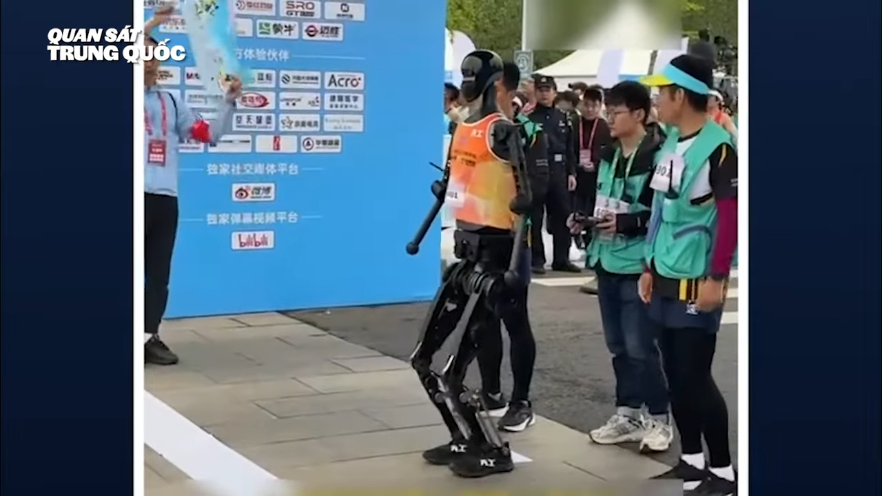 Ngày 19/4/2025, một robot tại cuộc thi bán marathon robot hình người ở Bắc Kinh. (Ảnh chụp màn hình video)