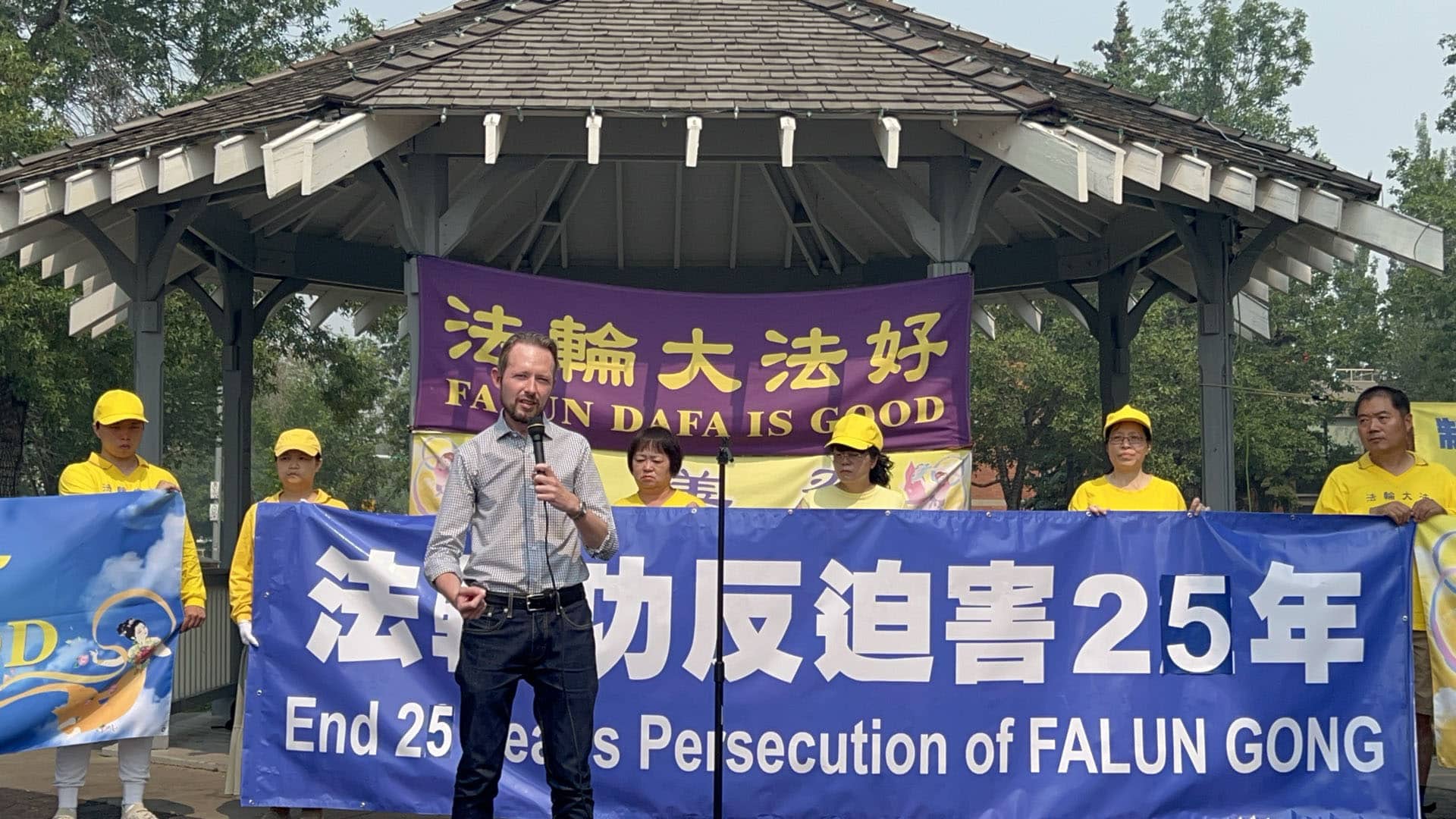 Tại sự kiện, Nghị sỹ Quốc hội Michael Cooper, Nghị sỹ Quốc hội St. Albert, Edmonton, đã phát biểu về những vi phạm nhân quyền mà người tập Pháp Luân Công phải đối mặt dưới chế độ cộng sản Trung Quốc: