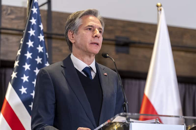 U.S. Secretary of State Antony J. Blinken and Polish Foreign Minister Zbigniew Rau deliver statements to the press in Rzeszow, Poland, on March 5, 2022. [State Department photo by Ron Przysucha/ Public Domain]