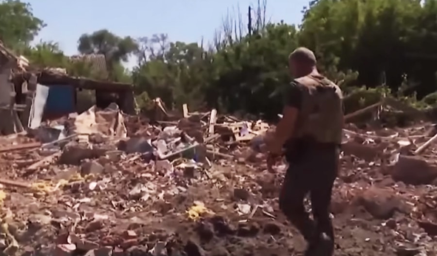 Trên đường ra khỏi thị trấn, một loạt đạn pháo hoặc một loạt đạn dược loại nào khác phát nổ phía trước. Phóng viên Sky News không nhìn thấy cận cảnh nhưng thấy rõ khói đặc bắt đầu cuồn cuộn bốc lên.
