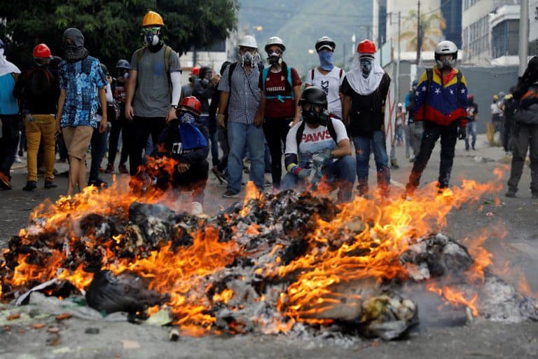 Những người biểu tình, một số mang theo đá và đeo mạng che mặt, đã đốt lốp xe và các thân cây dọc theo một tuyến phố ở trung tâm thủ đô Caracas, gây áp lực yêu cầu chính quyền Maduro phải cải thiện tình hình.