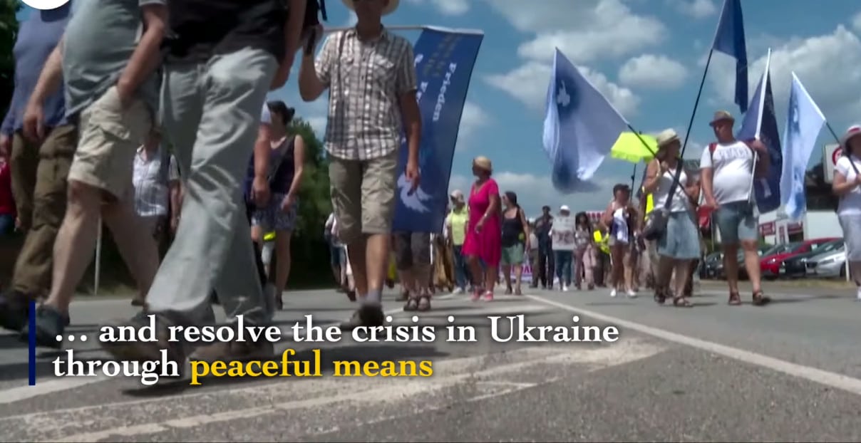Nhân dân Châu Âu thỉnh thoảng cũng có các biểu tình phản đối chiến tranh và kêu gọi đàm phán hòa bình như thế này. Theo miêu tả của phóng viên trong video về cuộc biểu tình bên ngoài căn cứ quân sự của Mỹ ở Ramstein nói trên, thì số lượng người biểu tình là khoảng 1.500 người.