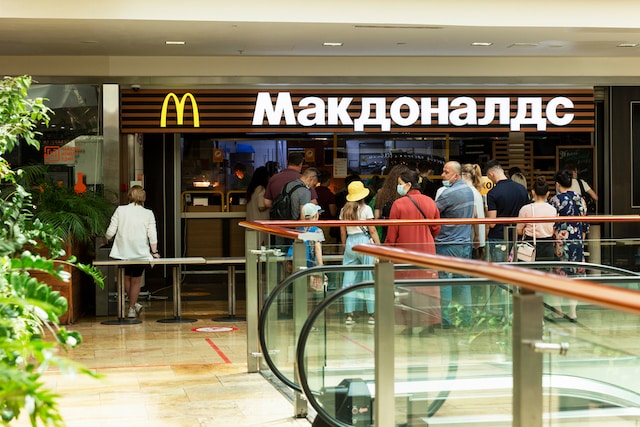 Công ty đã quyết định tạm thời đóng cửa các nhà hàng ở Nga vào tháng Ba, bao gồm địa điểm tại Quảng trường Pushkin mang tính biểu tượng ở trung tâm Moscow, nơi đã phá kỷ lục toàn cầu khi mở cửa vào ngày 31/1/1990, với hơn 30.000 người xếp hàng xung quanh khu phố để mua những chiếc Big Mac (chỉ một loại hamburger mang tính biểu tượng của McDonald’s) có giá 3 rúp.