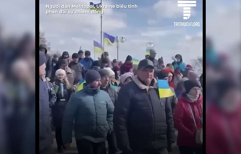 Người Ukraine biểu tình phản đối quân Nga xâm lược (Ảnh cắt từ video)