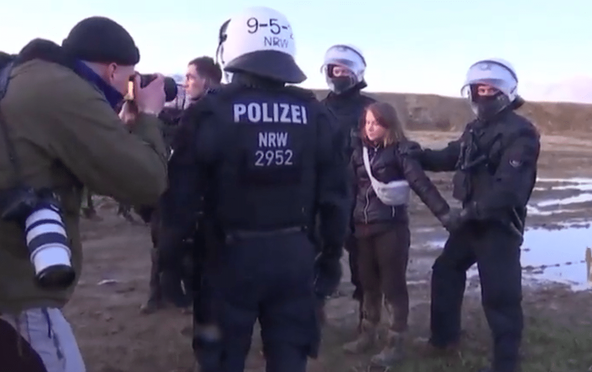 Nhà hoạt động khí hậu người Thụy Điển Greta Thunberg đã bị khiêng đi và giam giữ trong một cuộc biểu tình gần một ngôi làng ở Đức đang chuẩn bị được san bằng để nhường chỗ cho việc mở rộng mỏ than.