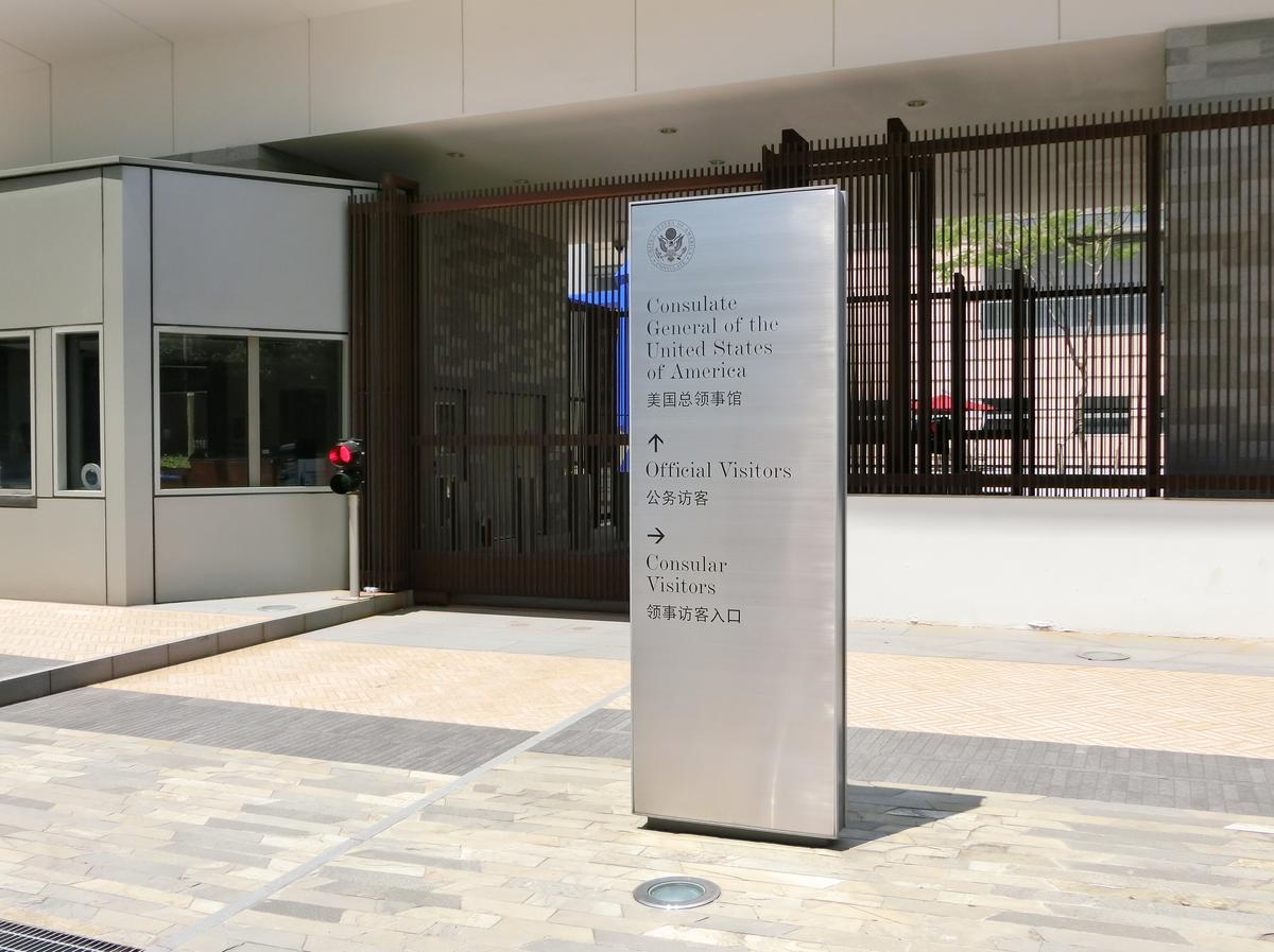 Biển hiệu trước Lãnh sự quán Hoa Kỳ ngày 4/9/2014 tại Quảng Châu, Trung Quốc. (Nguồn: Freer/Shutterstock)