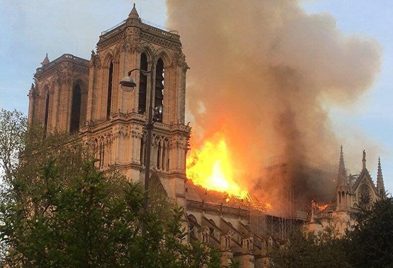 Hỏa hoạn bùng phát lúc 18 giờ 50, giờ địa phương Paris, ngày 15/04/2019. Khoảng 400 lính cứu hỏa được huy động, nhưng do địa hình phức tạp, việc dập lửa gặp nhiều khó khăn. Vòi phun nước không vượt quá 30 mét. Tháp nhọn trên nóc Nhà Thờ Đức Bà Paris cao 83 mét, có tuổi đời hàng thế kỷ, đã bị cháy rụi và sập.
